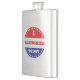 The product is a good size and came exactly as it was pictured.  The lid is not attached to the flask, which could be dangerous on drunken nights... The print came out surprisingly well and looks very sharp.  Would definitely recommend.