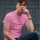 Simple, Stylish “I wear pink” custom name men’s t-shirt in modern minimalist typography which can easily be personalised for the support of your loved one with cancer. You can customise the text “for my sister” to replace with Mum, Grandma, Auntie, Cousin, Friend, Dad, Brother, etc or the name of the person touched my cancer. A cute way to offer your support and raise awareness.