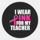 I Wear Pink For My Teacher Breast Cancer Classic Round Sticker
