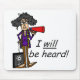 Funny attitude T-shirts, tote bags, cards, mugs, stickers, keychains, keepsakes, mousepads, and more with Stella proclaiming she will be heard!