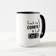 Clever touch my computer I will Cut You Typography mug. Text in black reads touch my computer I will Ctrl X (cut) you. Funny computer technology office coffee mug, travel much or beer stein. Clever gift for computer programmers. Geek humour. Design on both sides of mug.