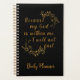 "Because my God is within me, I will not fail." daily planner. Sleek Black cover with bold gold lettering. Customisable Cover – Personalise it with your name and/or date. Select from black, gold, or white spiral to match your style.