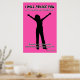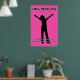 Proudly declare your faith and remind yourself to praise with this fun and stylish poster. Design features a pink background with the silhouette of a girl raising her hands in praise. Black words are outlined in white.
