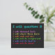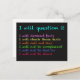Postcard has a black background with multi-coloured text reminiscent of old school house chalkboards.