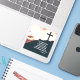 This Christian laptop sticker shows the silhouette of a cross on a hill at sunset with the words of the Bible verse of Psalm 13:5-6: "I trust in your unfailing love; my heart rejoices in your salvation. I will sing to the Lord, for he has been good to me."