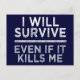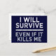 “I will survive – even if it kills me”. Add your own text / image on the back. See my store for more items with this design.