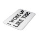 NewParkLane - Black and white bath mat, with funny quote 'I Woke Up Like This' in a fun, modern typography.