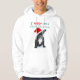 Funny and cute slogan Christmas hooded sweatshirt with bulldog puppy wearing a Santa hat. Available in various sizes for men and women.
