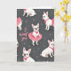 This cute Valentine’s Day card features a repeating pattern of white French Bulldogs set against a dark charcoal-gray background. In the center, one Frenchie stands out wearing a bubblegum-pink tutu and a matching heart-shaped collar, posed like a tiny dancer. The dogs have dark, expressive eyes and subtle brow lines that give them a sweet, slightly serious look. Some of the bulldogs appear fully, while others are cropped along the edges, adding visual interest. Soft gray heart shapes are scattered throughout the background for a gentle romantic touch. Across the front, the message “I woof you” is written in soft pink script that stands out clearly against the dark backdrop. It’s a charming choice for dog lovers and a fun way to share affection with someone special on Valentine’s Day.❤️.