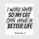 Let the world know where your true priorities lie with this hilarious and oh-so-relatable black and white car decal that reads: "I work hard so my cat can have a better life." Purr-fect for cat lovers with a sense of humour, this decal adds a touch of personality to your ride while honouring your favourite (and probably spoil) feline.