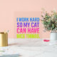 A bright, bold, and hilarious statement design for the dedicated cat parent! This quote, "I work hard so my cat can have nice things," perfectly captures the financial reality of loving a pampered feline. Featuring a vibrant, neon color gradient—cool blues blending into hot pinks and bright neon green—this design is a funny and relatable gift for cat owners, pet lovers, and anyone who sacrifices their paycheck for their beloved kitty's luxury.