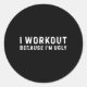 I Workout Because I'm Ugly Funny Workout Fitness Classic Round Sticker