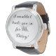 Bought last minute for hubbys 65th birthday. Arrived in NZ by express on the day. Loves it and so does everyone he’s shown it to. Lovely watch and strap and words small but clear. Thank you 😍. Great. Small but clear.