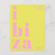 Send a stylish greeting from the Balearic Islands with this modern typographic postcard from Ibiza, España. The design features the word Ibiza split across three lines in bold, decorative lowercase letters, in pink on a vibrant yellow green background. Above, the phrase saludos desde (greetings from) is written in a sleek, thin sans serif font, adding a subtle, modern touch. Perfect as a vacation keepsake, a decorative accent, or to mail home from your island getaway. A minimalist yet eye-catching design for lovers of contemporary aesthetics and travel mementos.