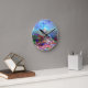 The clock did not take as long to arrive as I thought it might and was extremely well packaged. I didn't do the measurements so I didn't realize it is a little smaller than the average clock but that does not matter (just make sure you check if that's important to you).It is really nifty! It seems very solid and well made not flimsy at all. It has been going well and has kept good time in its few weeks on my wall. Nice product. Gets noticed too! Nicer in real life than the picture but true to the picture