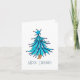 Card features an original illustration of a whimsical ice blue Christmas tree. "Merry Christmas" message underneath. Blank on the inside.