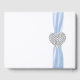 Elegant diamond heart with a ice blue ribbon decorate this guestbook. Wedding guest books are fun for both the couple and their celebrants. Invite attendees to leave you well-wishes at your reception, and you're guaranteed to have a keepsake to look back on for years to come. Plus, your guests will get to leave their mark on your event, not to mention put in writing whatever they didn't have a chance to express in person on the big day. Personalise the book by changing the text in the fields provided. You can change font style, size, and colour.