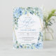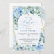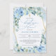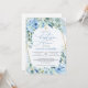 Ice Blue Floral Gold Geometric Frame Boy Baptism Invitation