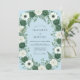 This elegant design features a serene palette of ice blue and deep forest green. Crisp white anemones with dark centres are paired with textured succulents and delicate ferns to create a cool, wintry aesthetic. The arrangement evokes a sophisticated botanical mood perfect for a chilly season. Rich greenery provides a striking contrast against the pale, misty background.