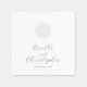 Ice blue snowflake winter wedding napkins with elegant calligraphy. Detailed icy blue snowflake design. Customise with your names and your wedding date in dark navy calligraphy and serif lettering. Designed to match our Ice Blue Snowflake Winter Wedding Collection.