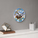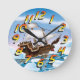 The clock did not take as long to arrive as I thought it might and was extremely well packaged. I didn't do the measurements so I didn't realize it is a little smaller than the average clock but that does not matter (just make sure you check if that's important to you).It is really nifty! It seems very solid and well made not flimsy at all. It has been going well and has kept good time in its few weeks on my wall. Nice product. Gets noticed too! Nicer in real life than the picture but true to the picture