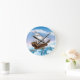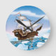 The clock did not take as long to arrive as I thought it might and was extremely well packaged. I didn't do the measurements so I didn't realize it is a little smaller than the average clock but that does not matter (just make sure you check if that's important to you).It is really nifty! It seems very solid and well made not flimsy at all. It has been going well and has kept good time in its few weeks on my wall. Nice product. Gets noticed too! Nicer in real life than the picture but true to the picture