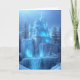 Holiday card of a magical castle made entirely of ice. A frozen waterfall descends from the keep's foundations to become icicles at its end. Pine trees flank the castle as the Sun refracts through the ice creating beautiful blue lights that seem to come from the heart of the keep... maybe the frozen dreams trying to break free. The image was generated with Leonardo.ai and altered by me.
