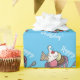 A pretty blue wrapping paper with the pattern of a doodle ice cream bowl and the words "Happy Birthday" written in white letters . Ideal for anyone (kids , teens or grownups alike) .