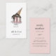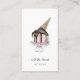 Elegant business cards for your bakery, patisserie or cake decorating business feature a pink watercolor cake illustration topped with a chocolate ice cream cone, with two lines of custom text beneath. Personalise the reverse side with your full contact details on a pastel blush pink background.