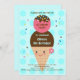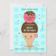 This cute invitation is ideal to celebrate an ice cream party. It features an ice cream cone character with two scoops of ice cream with fudge and sprinkles. The background has a polka dots pattern. Eye-catching design ideal for a fun an energetic girl.