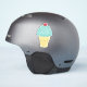 Illustration of an ice cream cone with a scoop of blue ice cream topped with sprinkles and a cherry.