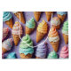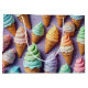 A delightful assortment of colourful ice cream cones with sprinkles is arranged against a vibrant purple backdrop