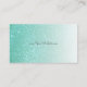 This lovely business card features a teal coloured glitter gradient background on both sides of the card. The glitter is more dense on the left portion of the card, and gradually fades towards the right. On the right side of the card is a glitter design ice cream cone.