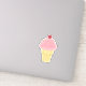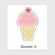 Illustration of an ice cream cone with a scoop of pink ice cream topped with sprinkles and a cherry.