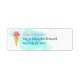 A yummy set of address labels with a delicious ice cream cone illustration, with a scoop of pink strawberry ice cream held by a waffle cone. Set on an aqua blue watercolor paint splatter / brushstroke.