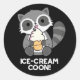 Ice Cream Coon Funny Animal Racoon Pun Dark BG Classic Round Sticker