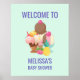 A welcome poster for your event. Illustrated with a bowl of ice cream with 3 delicious scoops covered in candy sprinkles. An ice cream cone also with 3 scoops of chocolate, vanilla and strawberry. A dessert bowl filled with neopolitan flavoued ice cream with a delicious cherry on top.