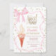 Ice Cream Diamonds Pink Bow Striped Birthday Invitation