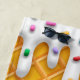 Vanilla ice cream dripping on a waffle cone with multicolored sprinkles.