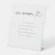 Our ice cream acrylic table pedestal display sign features hand lettered typography adorned with a heart for a minimal and elegant way to display food at your wedding reception or event.