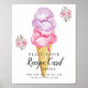 Whimsical bridal / wedding shower sign featuring watercolor illustration of pink and purple ice cream scoops on a waffle cone and pink flowers. The text says "place your recipe card here for the bride to use year after year."