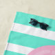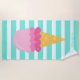 Turquoise and white stripes with a pink ice gream as decoration. Personalise and add your name. Turquoise coloured letters.