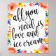 An elegant cutting edge wedding sign, features the text "All you need is love and ice cream" in a extroverted script font, the brush texture adds a spontaneous and playful feeling. The background colour can personalised according to your needs and preferences, please contact me if you have any special request.