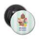Personalised bottle opener for a baby shower or other event illustrated with a bowl of ice cream with 3 delicious scoops covered in candy sprinkles. An ice cream cone also with 3 scoops of chocolate, vanilla and strawberry. A dessert bowl filled with neopolitan flavoued ice cream with a delicious cherry on top. A green and white stripes pattern in the background.