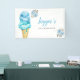 Cute and fun birthday party decor for your child's ice cream theme party! The banner has watercolor illustration of blue and mint green ice creams on a waffle cone with pink rose flowers. The text says "XX's Ice Cream Shop."