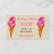 A cute business card suitable for an ice-cream business or ice-cream parlour / shop. This card features cute hand drawn ice cream waffle style cones with pink ice-cream. The text and background colour is fully able to be customised to suit you business needs.