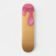 Fun trendy waffle cone skateboard design with pink ice cream melting down the side.