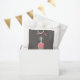 The invitation card design in shades of pink, mint and rich chocolate brown and matching party accessories are suited for young children celebrating their first birthdays.