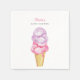 Cute ice cream theme baby shower paper napkin featuring watercolor illustration of pink and purple ice cream scoops on a waffle cone. Perfect for a girl's shower in the summer.
