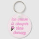 NewParkLane - Funny summer keychain, with quote: 'Ice cream is cheaper than therapy' in a fun hot pink scrpt typography, wit small ice cream cone.